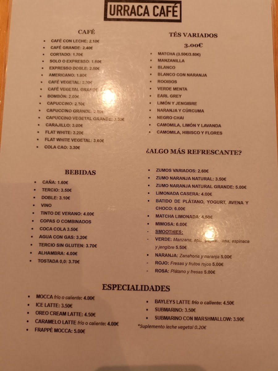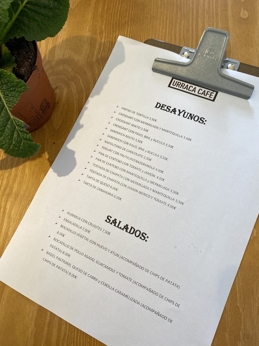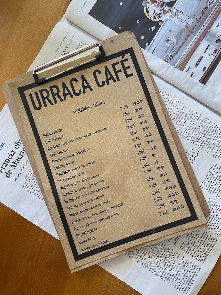 Urraca café Menu